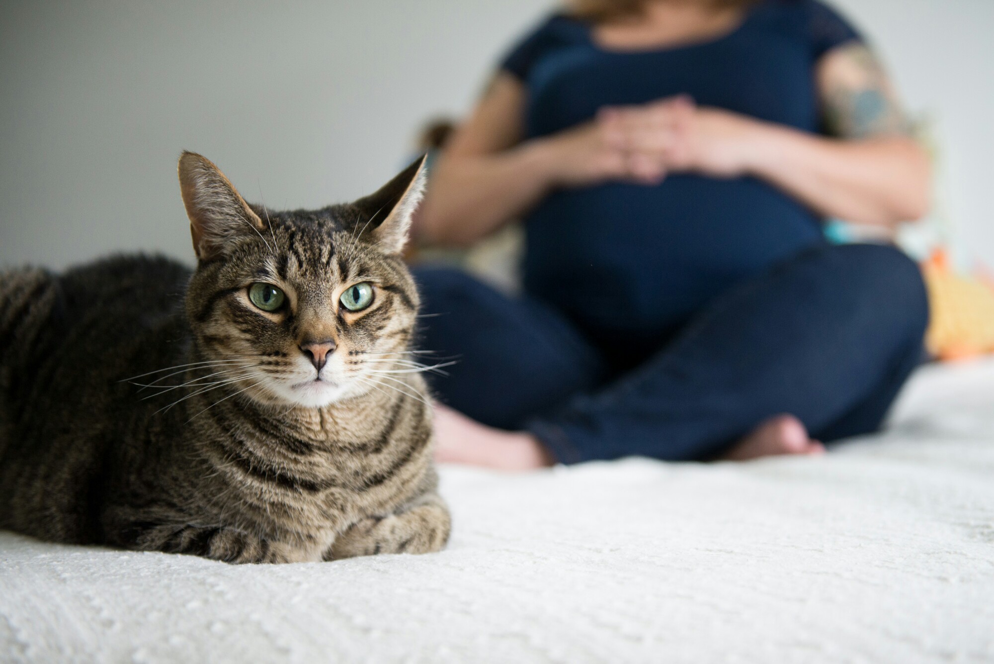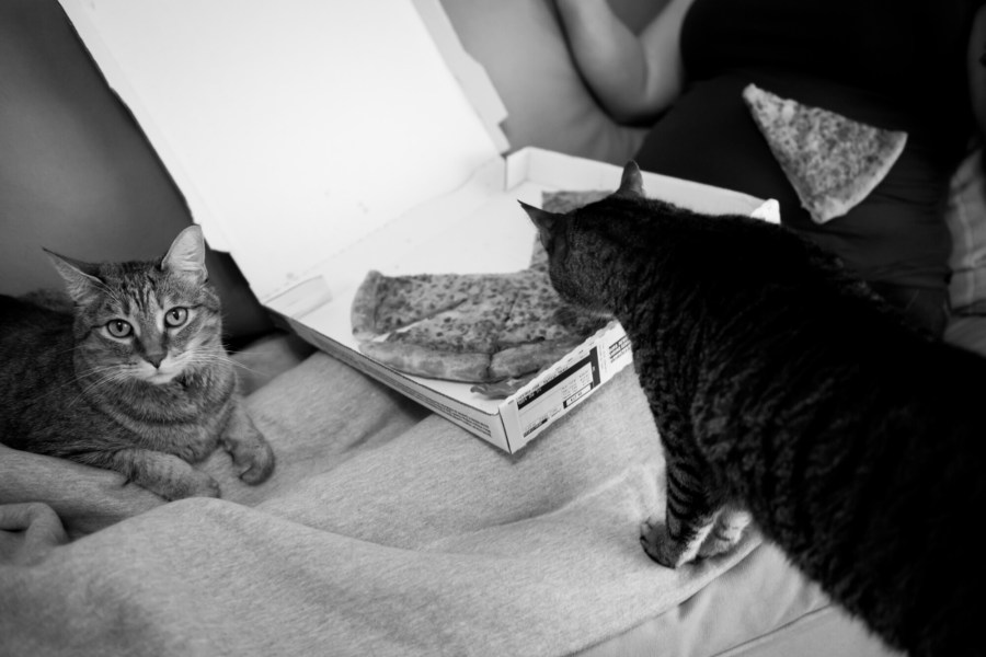 And luckily, I came up with a great idea. How about we take some maternity photos where I’ve spent most of my time in pregnancy? On the couch. At home. With these cats.