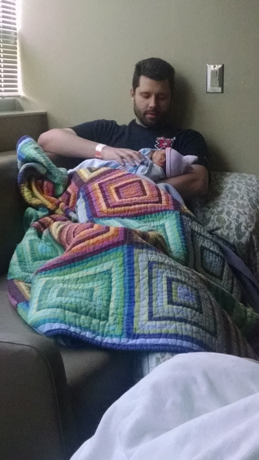 The night nurse suggested I take a break for a couple of hours and try to get some sleep, so I reluctantly handed her over to Kevin for a few hours and got some sleep.