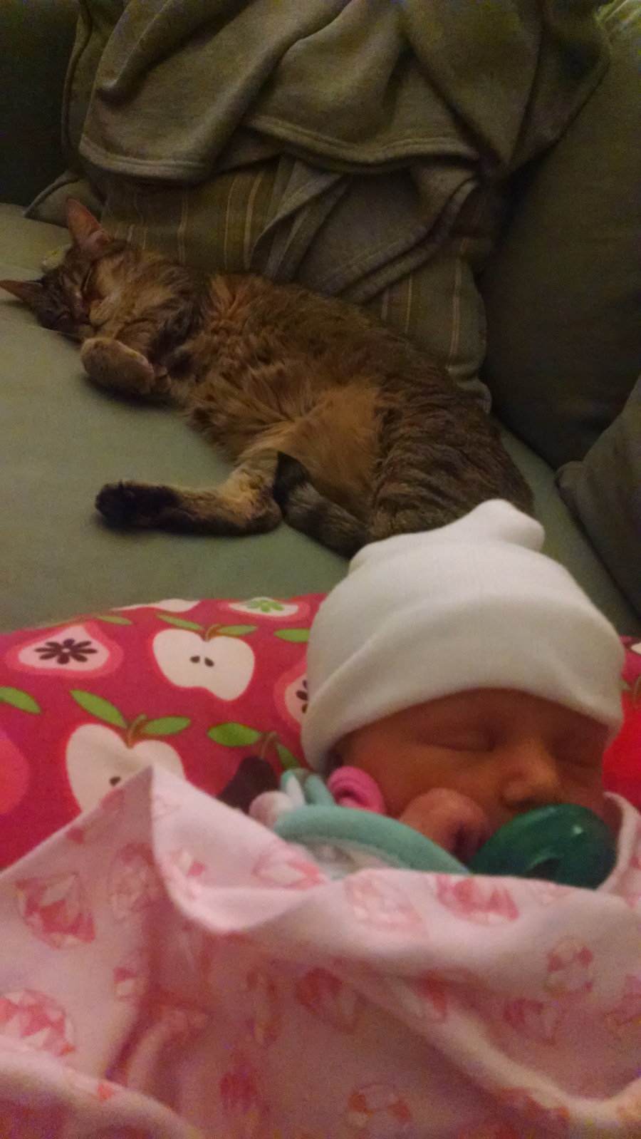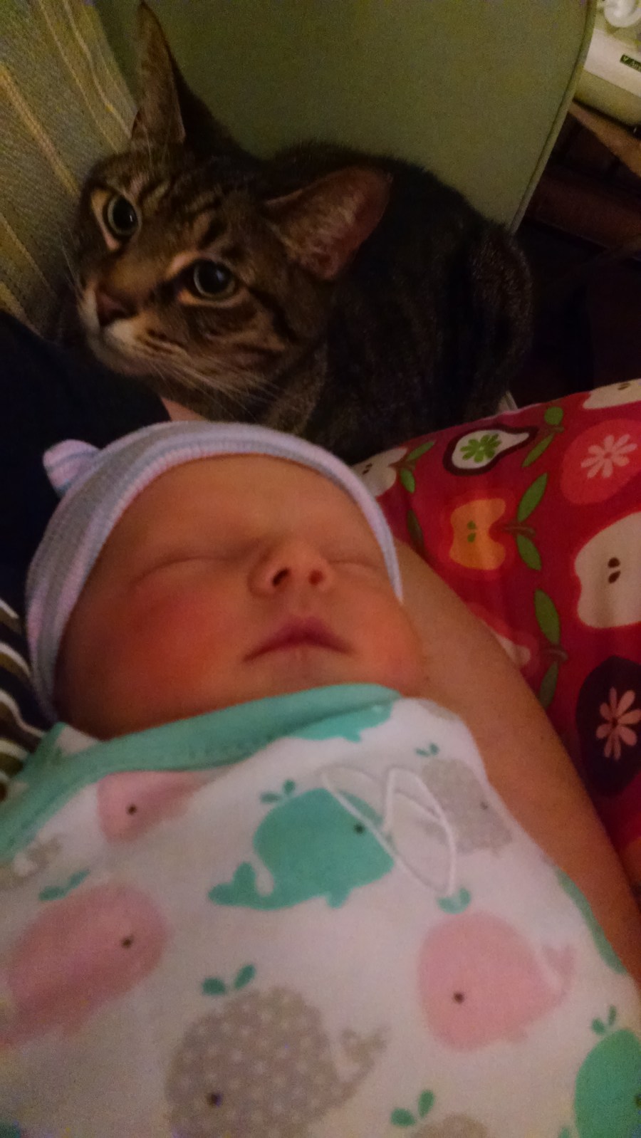 Being home has been fantastic. Ember is eating more and more, I’ve been pumping and getting her fed (we’ll be working more on breast feeding this week when we’ve got less visitors) and the cats are very happy to have her here.