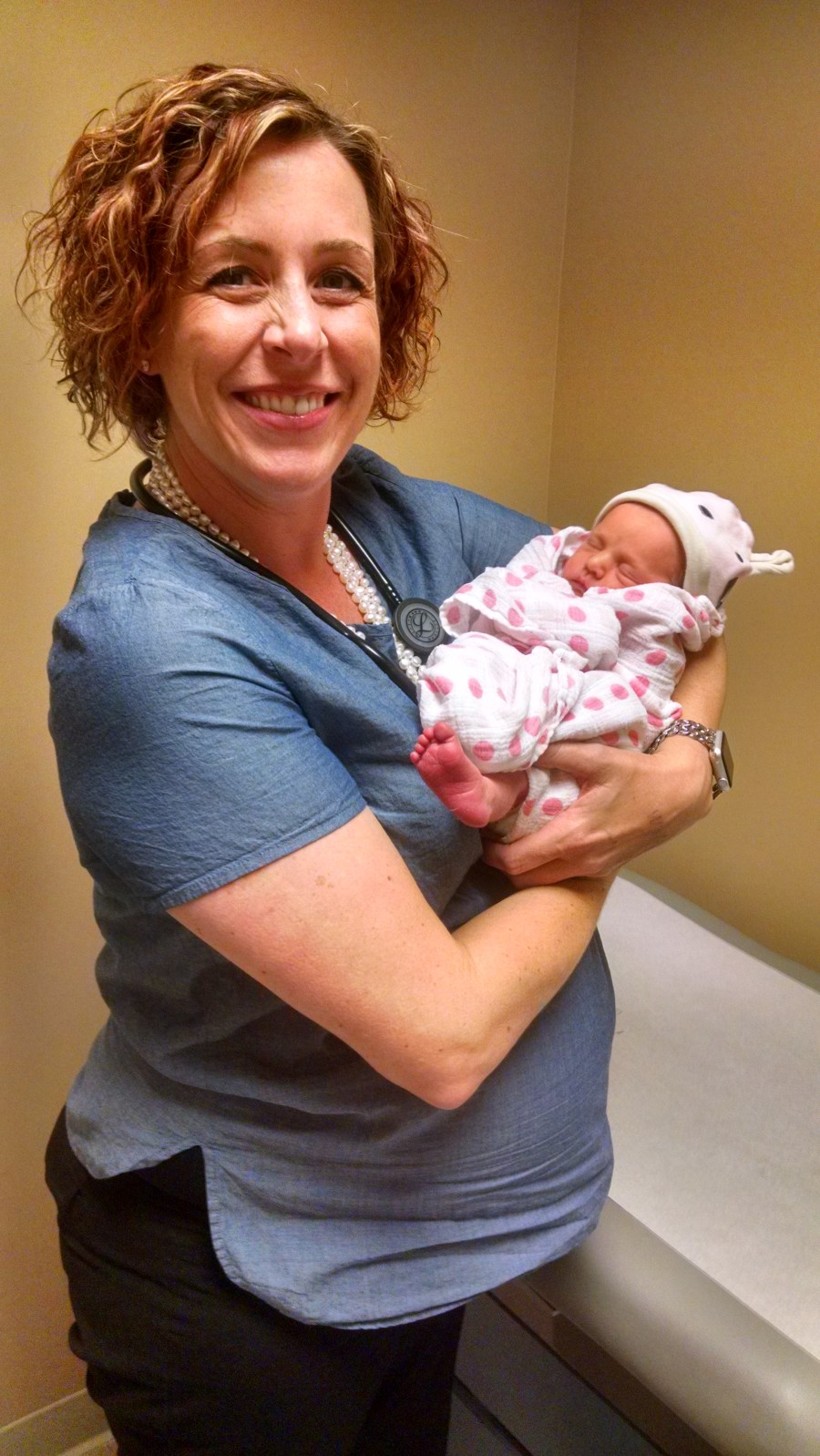 Ember is looking great – she’s weighing in at 5lbs 10oz, which is getting close to her 6lb original debut weight. Dr Katie said everything looked good and was very positive. And she enjoyed a few cuddly minutes with kiddo. We can’t wait to meet her newest addition to her family coming in June – another girl to add to her already fantastic crew! Congrats to Dr Katie!