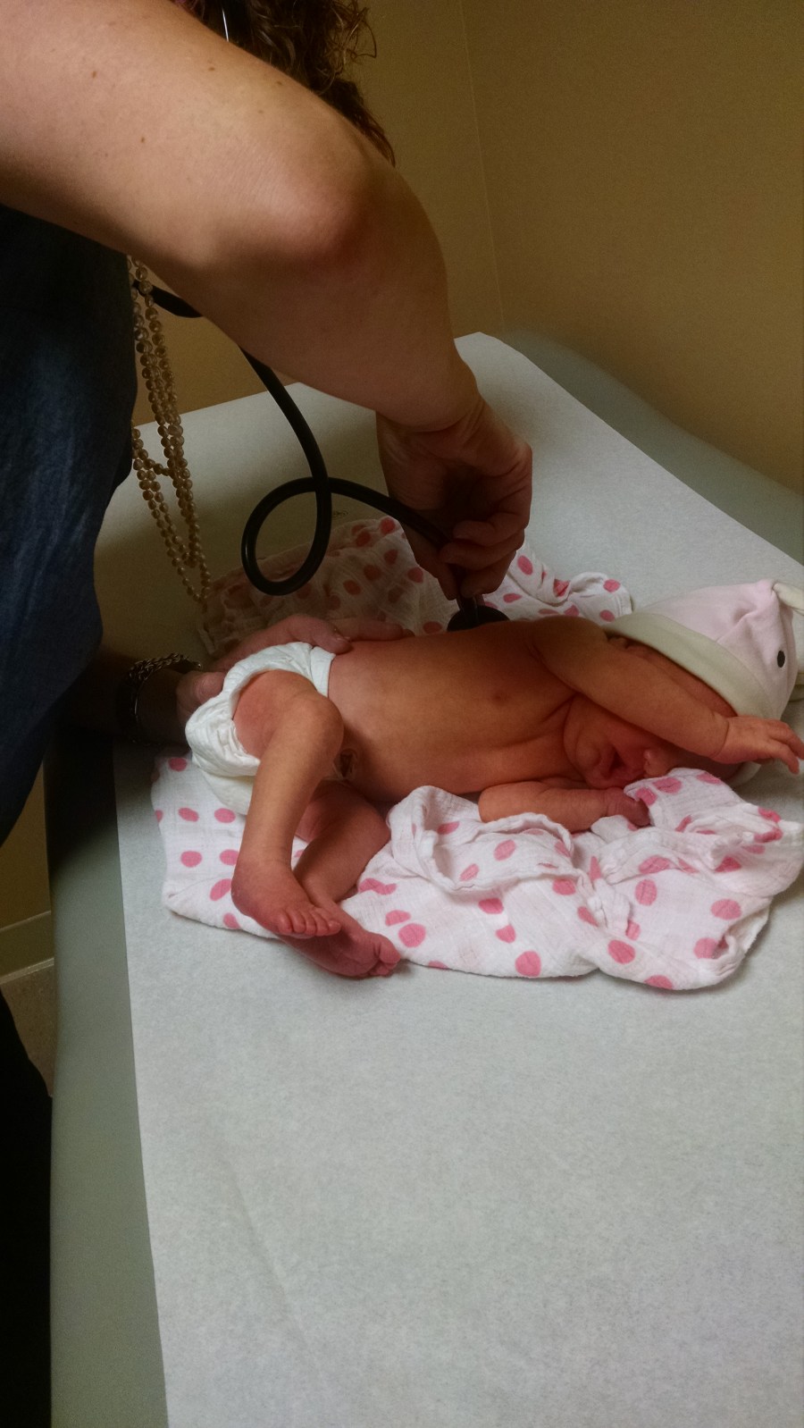 Gigi had taken the night shift and I was seriously hoping I could let her sleep in, but when the office told me they could get us in at 10 am, I knew that we’d have to rush off. Luckily, Gigi was up and at ’em and we were out the door by 9:30. As someone who usually takes all of fifteen minutes to get ready, that one hour window was plenty of time for me to get up and go, but most normal people (including Gigi) take longer. I was impressed with how quickly she went from asleep to out the door. I packed kiddo’s diaper bag for the first time, did some quick math on feeding times, and off we went.