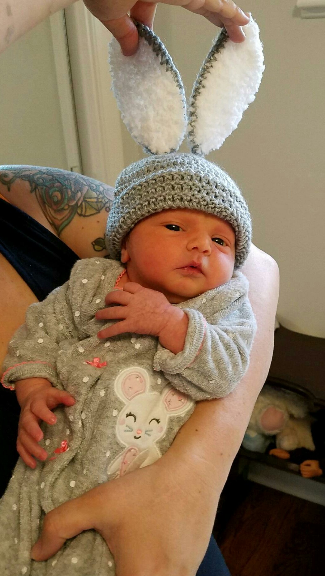 All that to be said, this amazing photo was captured yesterday of an adorable Easter Bunny (hat provided by Aunt Kathryn and Uncle John) who was caught in the wild.