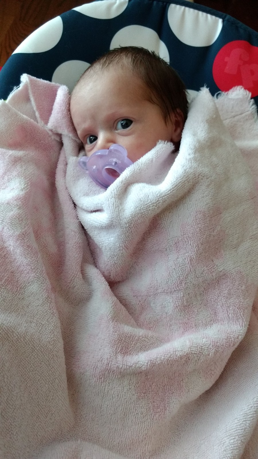 After Ember eats, she needs to sit and chill for a bit to digest her meal. Like most normal people, I’m sure. However, Mommy is Always On The Move with diapers to be changed, laundry to be done, beds to be made, bottles to be washed.