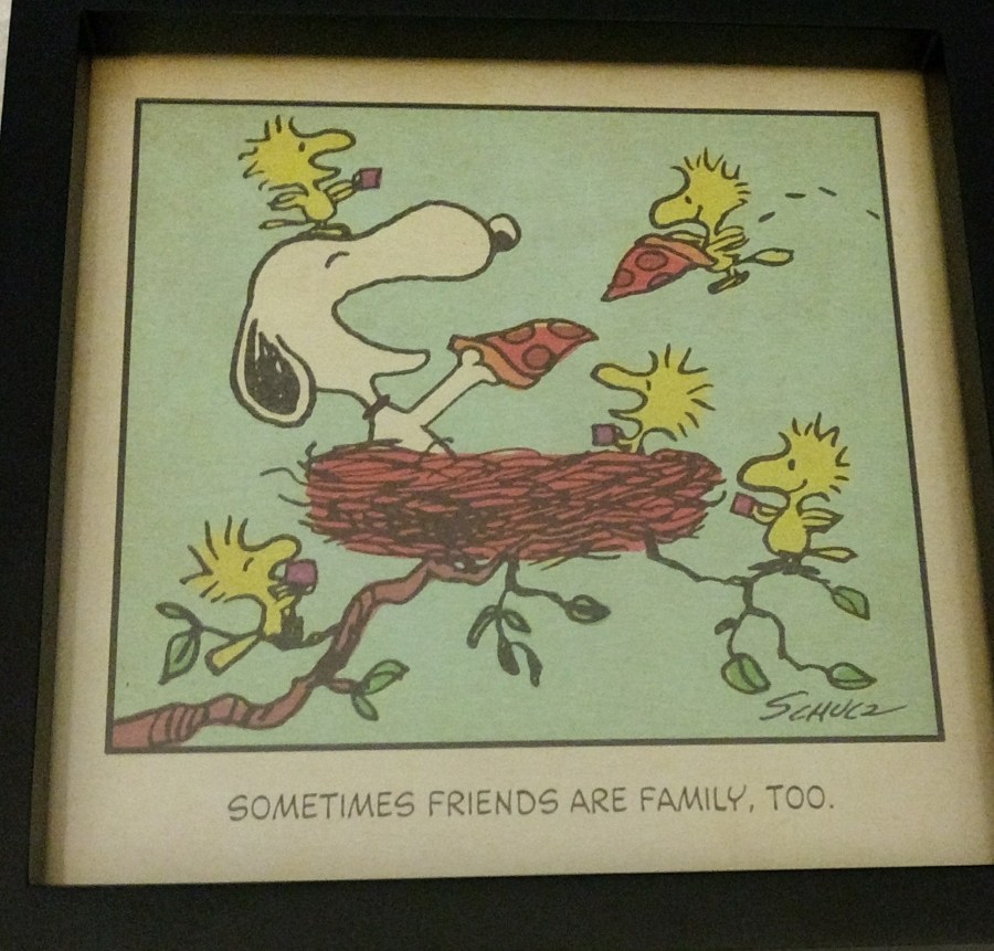 Our little family may not have lots of blood relatives (I’ve got a small crew at this point), but we’ve got a huge support system. While Ember sees her Gigi (my mom), her Mimi and Bapu (my aunt and uncle), my dad here and there, and Kevin’s mom and dad regularly, we are lucky to still have so many friends who care about us. I saw this little sign at Hallmark the other day (this officially makes me a mom since I’m shopping there I guess) and decided to buy it.