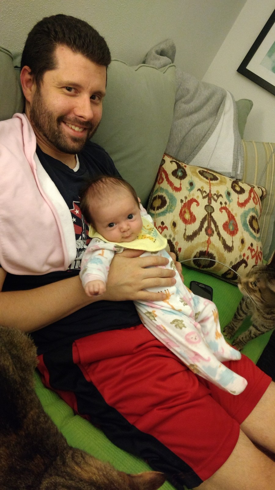 She’s starting to sleep for longer stretches (sometimes) and we’re working on moving out of the rock n’ play (hammock type sleeper) and into the pack n’ play (baby crate) and crib to get ready for day care. Speaking of which, we are happy to report that after a lot of sweat, stress, and obscenities, we’ve decided to go to Signal Centers and were happy to drop off our paperwork and first check today. I’ll be taking her the week before I go back to work as a dry run – for her but mostly for me. Being away from her a few hours at a time has been alright, but I’m always ready to get her back – “okay but it’s been four hours now so I need to see my baby, thanks.”