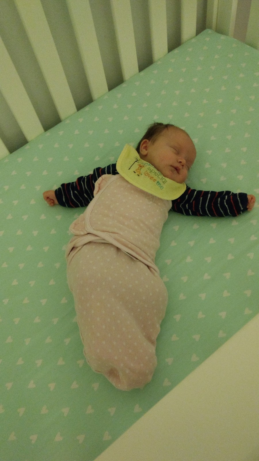 I’ve been worried about a flat spot on the back of her head and have recently shuffled her into the pack n play and crib to sleep at nights in hopes of helping out the issue – as well as getting her ready for daycare where they only have cribs. She’s been doing a great job ever since we swaddled her to sleep.