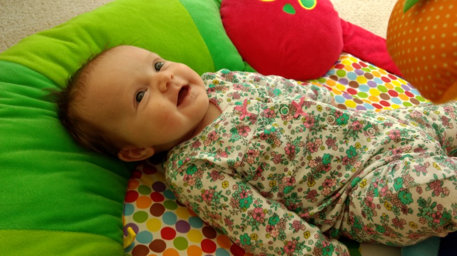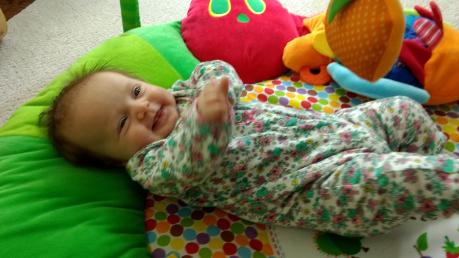 We are making the most of our last weeks at home together. Ember loves playing on her play mat and discovering new toys every day.