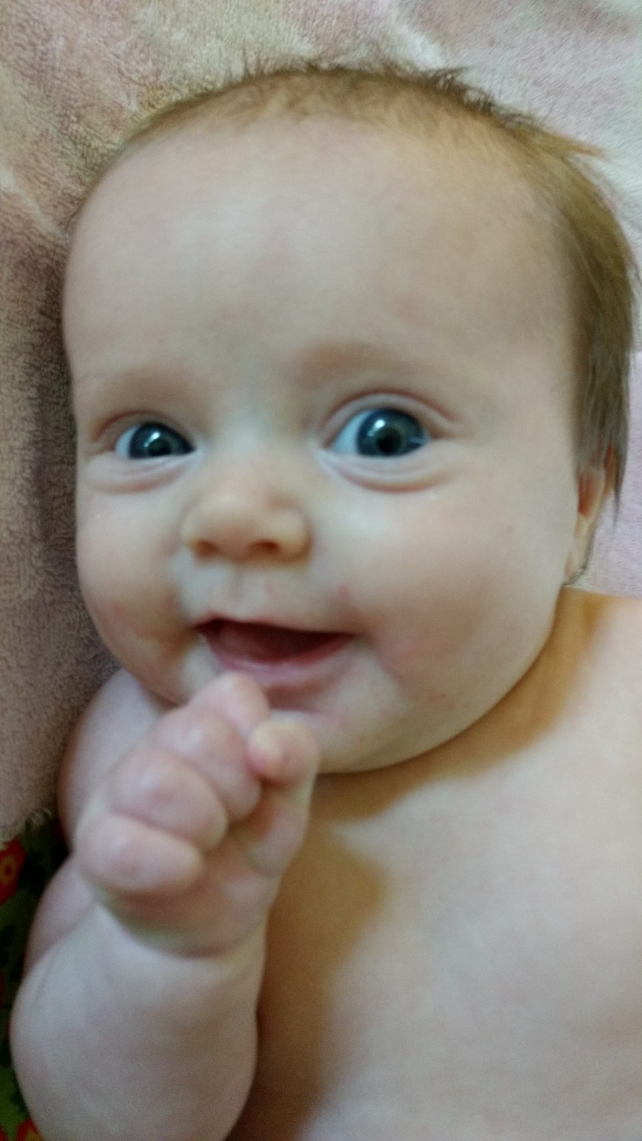 She’s also very silly and loves rolling around when getting her diaper changed.