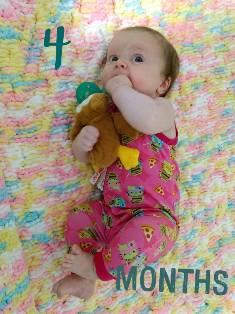 She’s doing a lot more talking and is getting tall – too big for her 3 month pajamas, so we’ve moved on to 6 month clothes in most labels. Shes sleeping unswaddled and usually stays asleep until about 3 or 4 am. She’s my favorite person in the world, so I can’t think of a better way to spend my time than this.