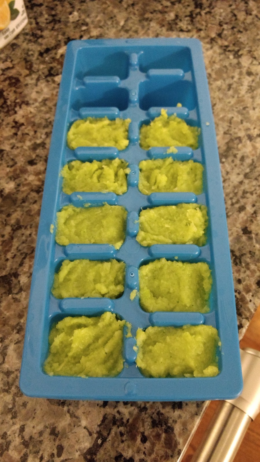So far we’ve got frozen broccoli, brussel sprouts, peas and some corn. It’s a lot of fun and a great way to use leftover steamed veggies from dinner. I’ll probably thin them out as needed with milk and mix foods as we progress. The newest rules say to wait until 6 months and start them on veggies first, so I’ve been having fun pureeing things.