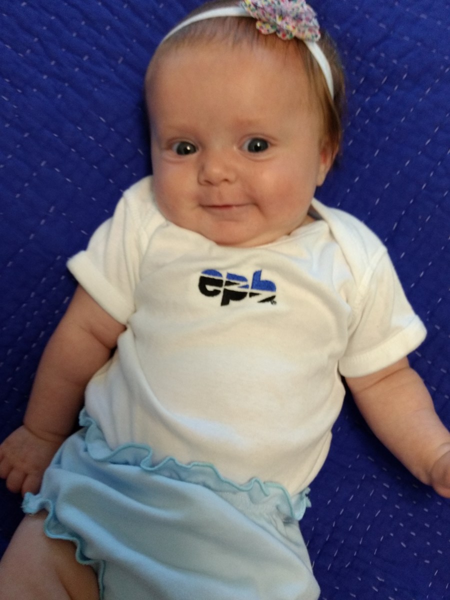 We took some cute photos this week, but otherwise it’s just life as usual here. This first one will be in our work newsletter for September in the office provided onesie.