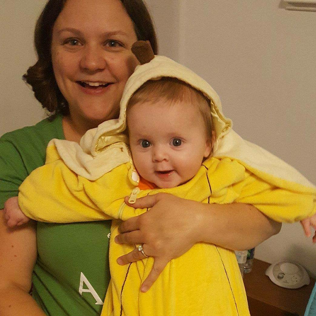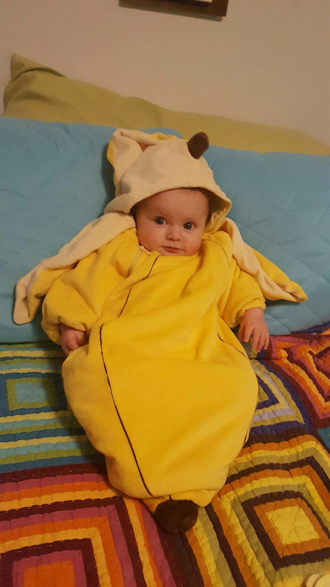 When we got her home, we decided to try out her banana costume I had planned to put her in for the evening of Trick or Treating with our friends Mac, Laura, Trillium, and Forrester.
