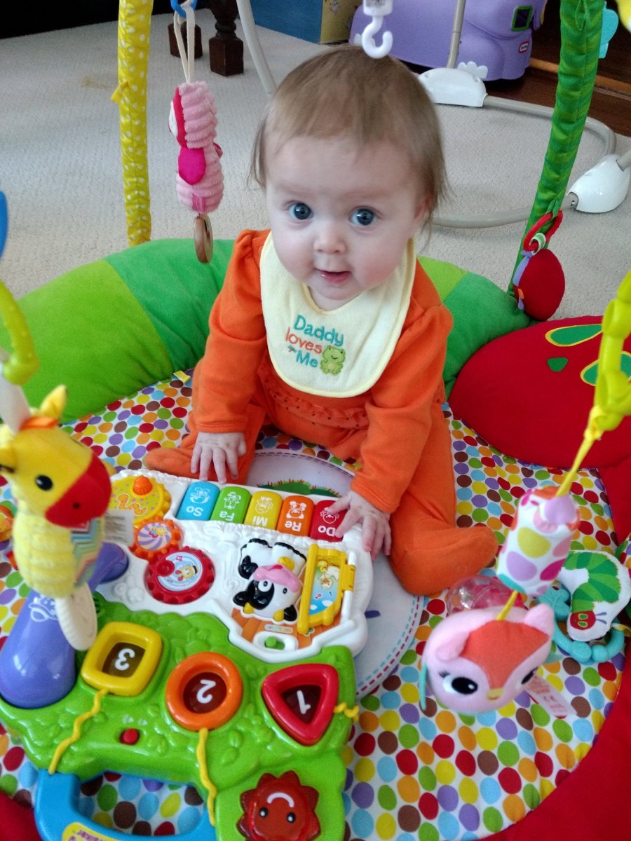 Ember’s new favorite thing to do is sit up and smack things. She says “ahhhhh!” All day and we joke that she makes monster noises as her words are mostly growls.