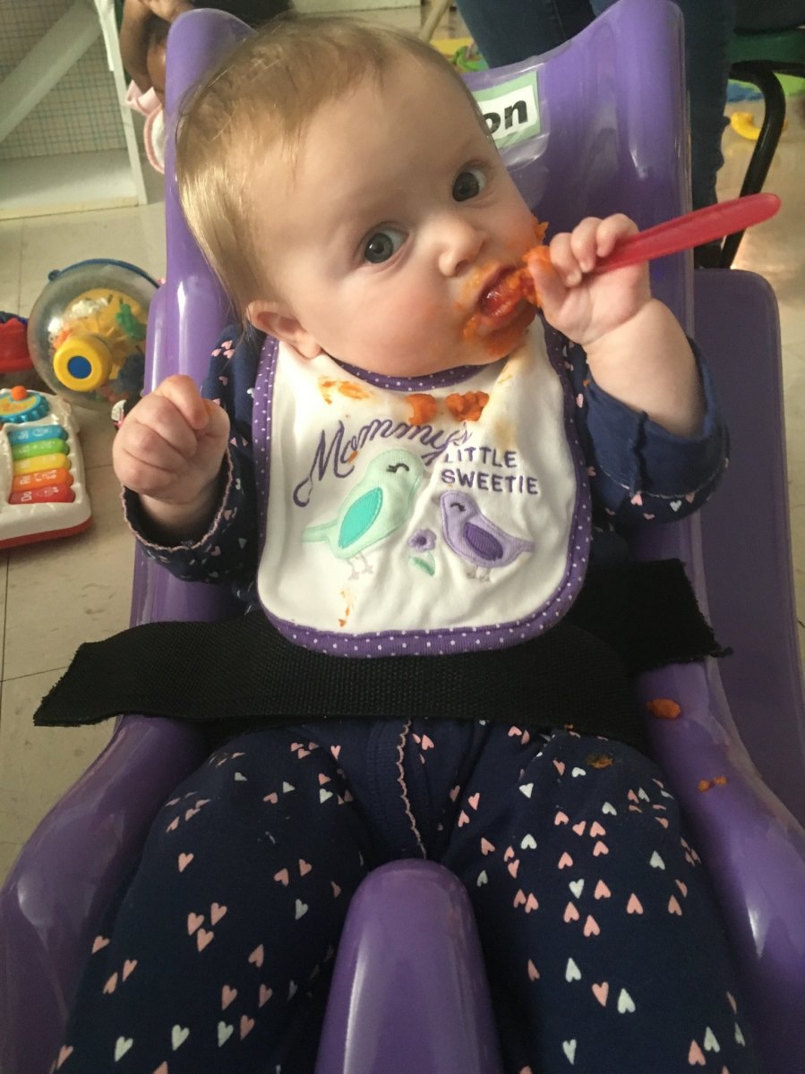Sometimes she thinks she’s big enough to feed herself (she isn’t).