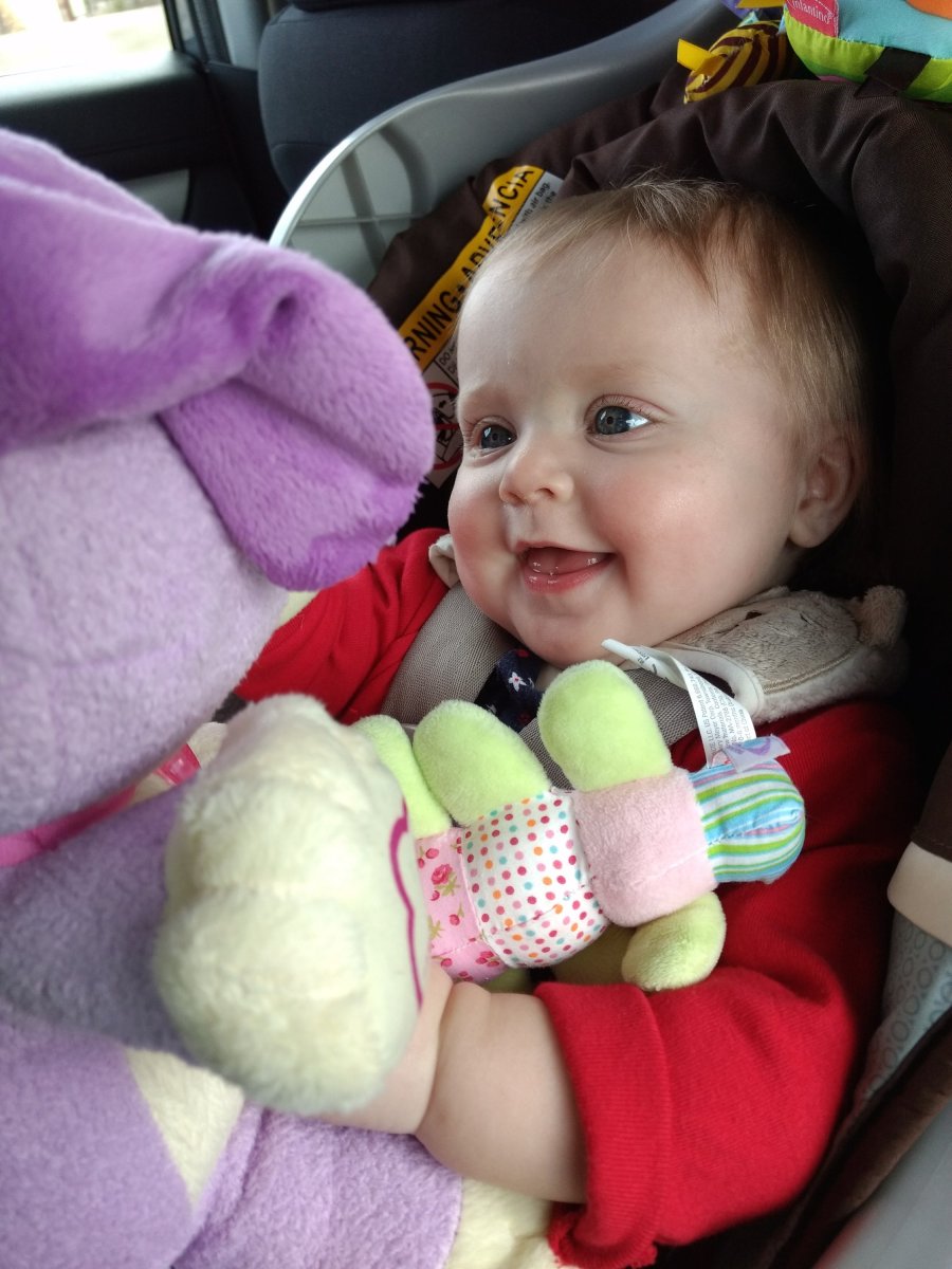 We went to visit Godparents Kathryn and John where she opened her first gift (a fantastic book about important ladies in science), and it brought out a gift opening paper tearing squealing monster.