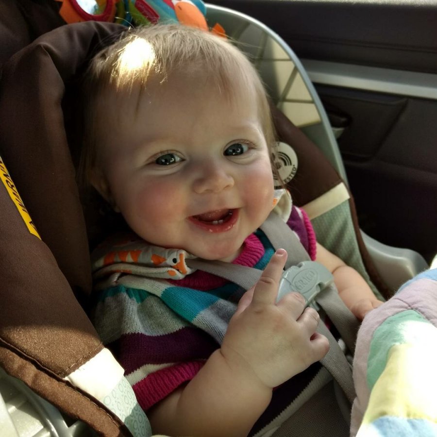 She even let us see her two bottom teeth in this photo! She’s been working on the top teeth as well. We’ll see when they start coming all the way in if she’ll show those more often!