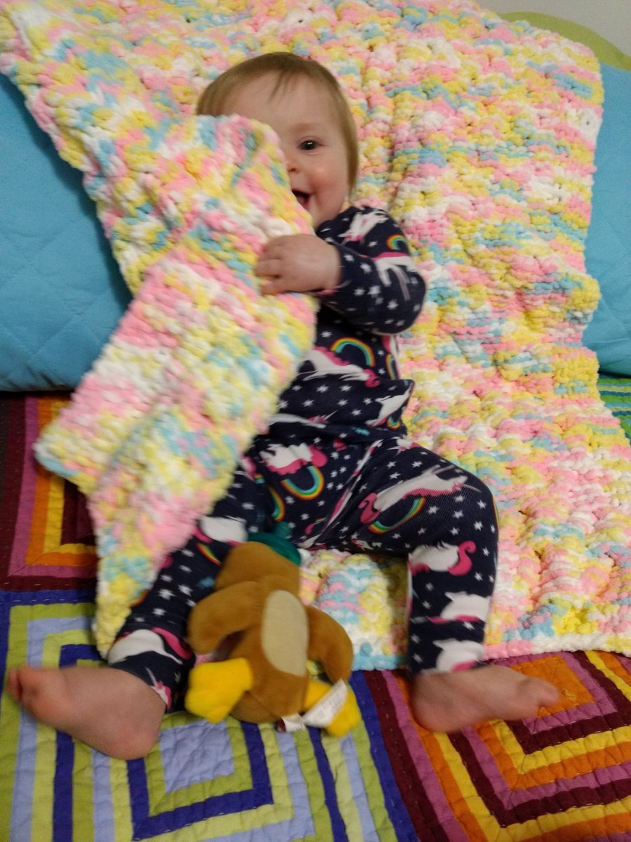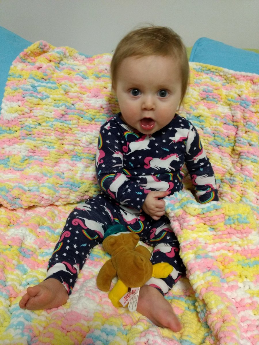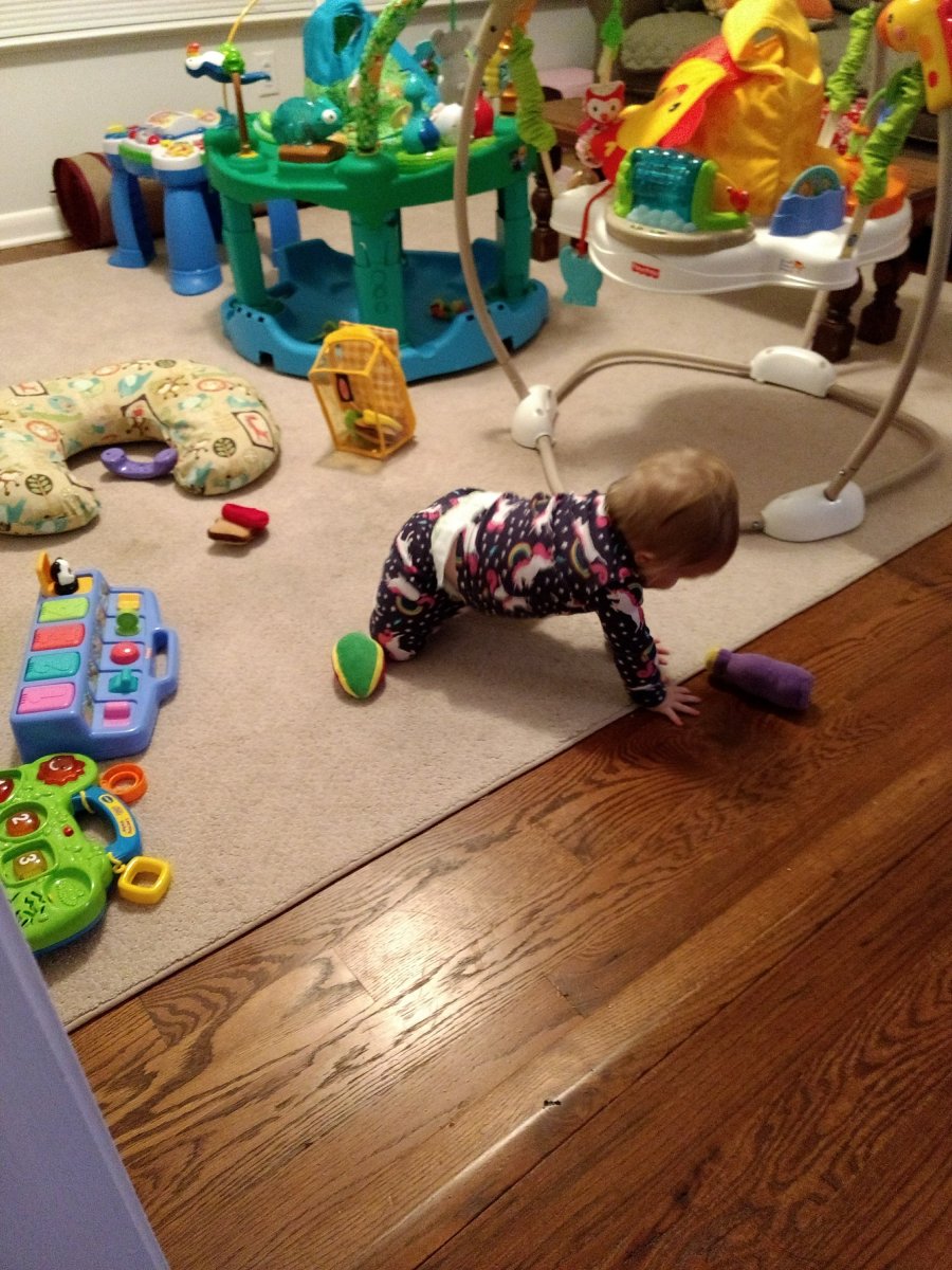 Although she isn’t fully crawling yet, she’s making big strides towards it every single day.