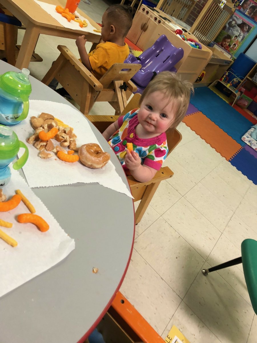 She’s her mom’s baby, alright. We love those salty snacks (see the Cheeto?).
