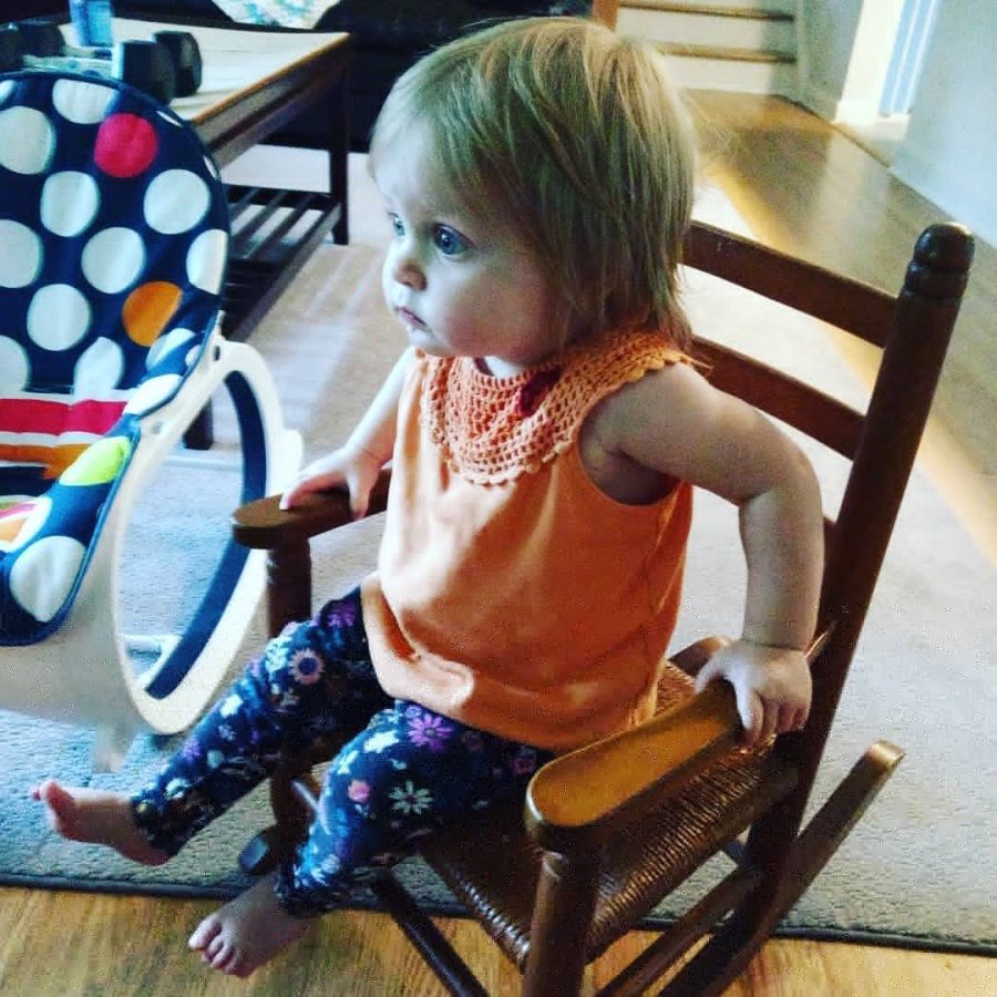 We took a quick weekend trip to Birmingham last weekend and visited some dear family who hadn’t seen Ember since she was first born. They were gracious enough to return a rocking chair that my grandmother had given them from when I was small. Ember loves it.