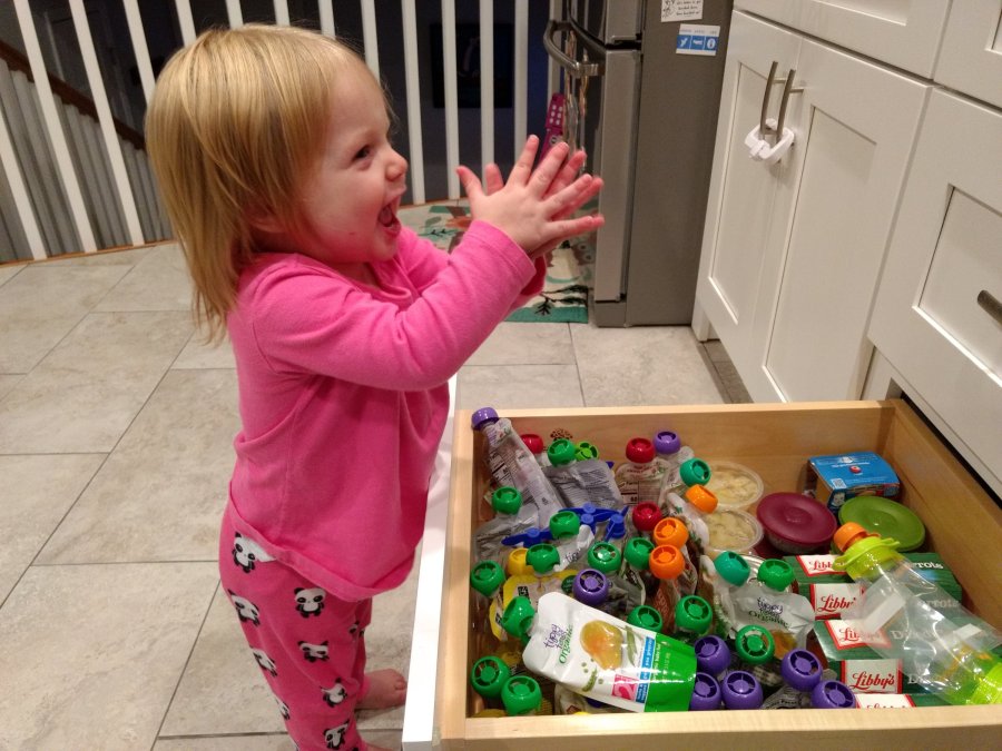 She is growing so fast. She knows all her routines including getting a pouch out of her drawer when it’s time for dinner.