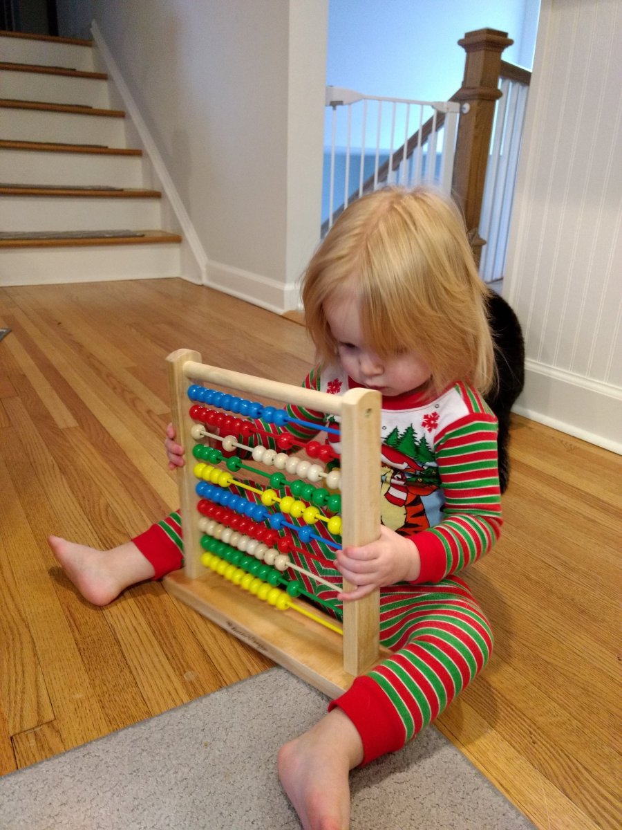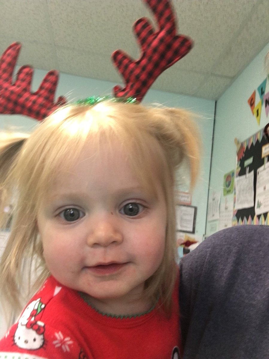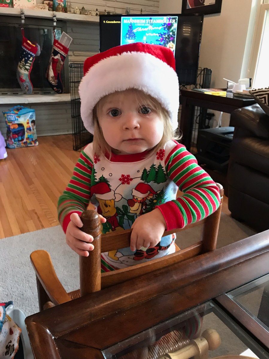 She talks up a storm, calling our cat Marvin by his new name MoMo, and loves to shake her finger and tell him “No, No, MoMo!” She knows all of the names of her classmates at school and had a blast this holiday season.