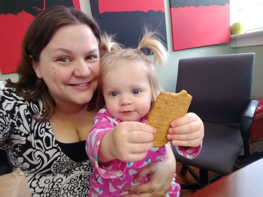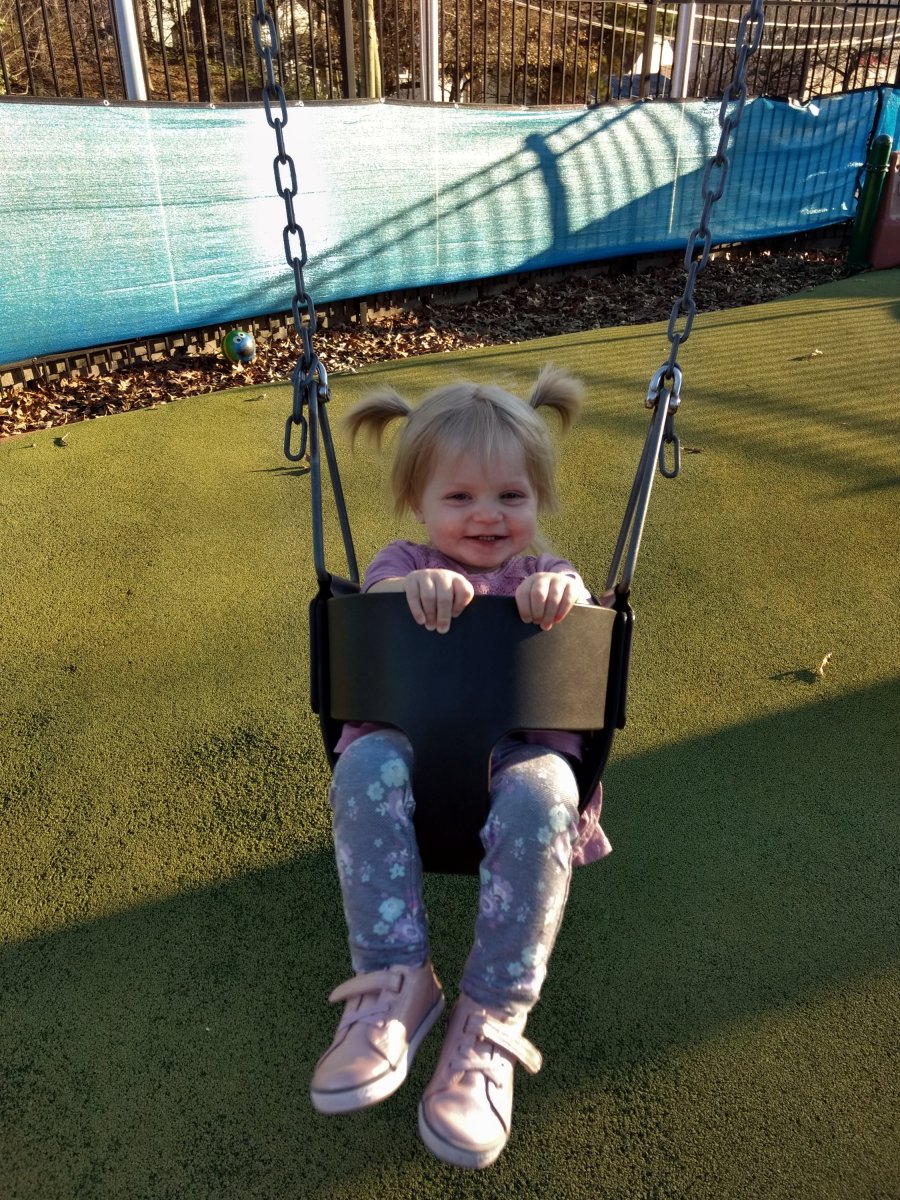 Ember is loving school per usual. She plays with her friends, loves the swings and comes to visit mom and the accounting staff at the end of most days.