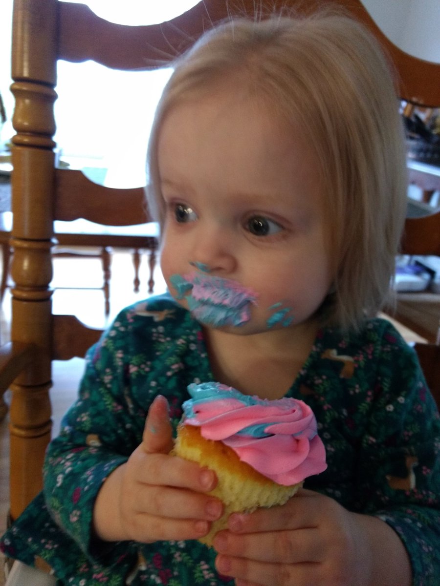 We had a get together this weekend with close friends and family to announce the gender via cupcakes. Ember was VERY excited about cupcakes – and mostly icing.