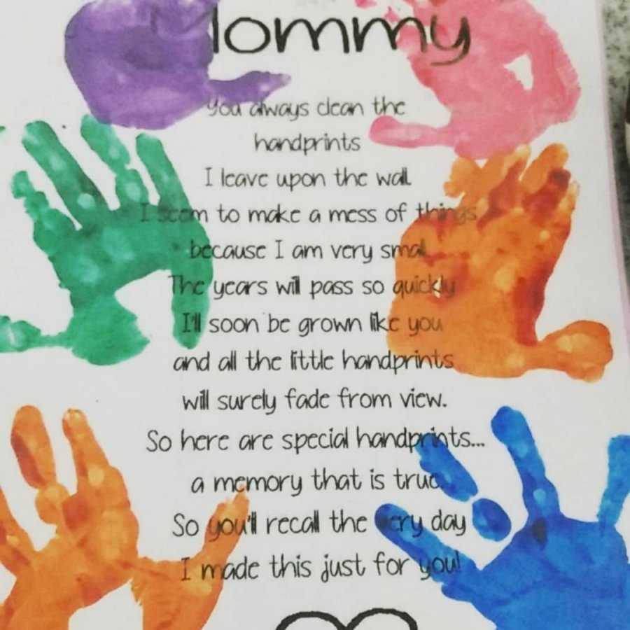 Ember’s teachers have always been great but her teacher Miss Ashley is especially crafty and presented mom’s this sweet hand print poem along with a photo of kiddo making the art. Needless to say, I couldn’t look at it until I got home from school to avoid crying in front of other people. We framed the two together this weekend.