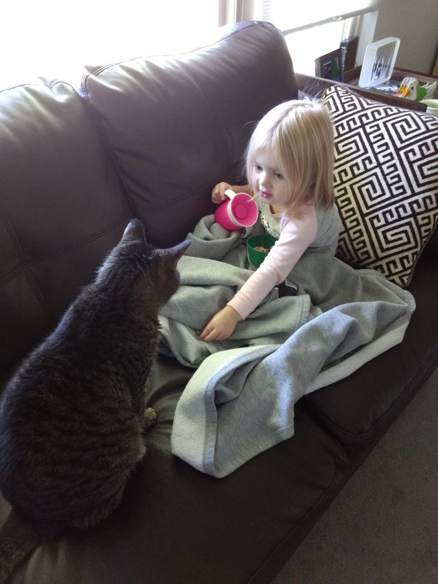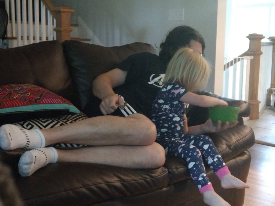 She and daddy get up earlier than mommy most weekend mornings and eat cereal and play.