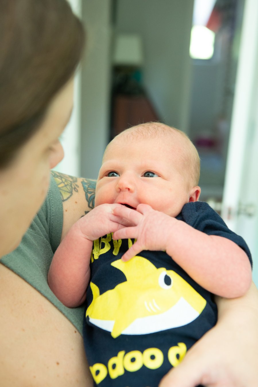 Baby Zora is officially two weeks old. We went for our check up today and were happy to find her weight has bounced back up to 7lbs 10oz, which is 6oz above her birth weight. The girl can eat!