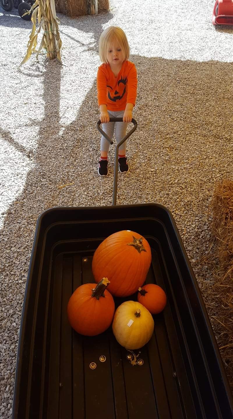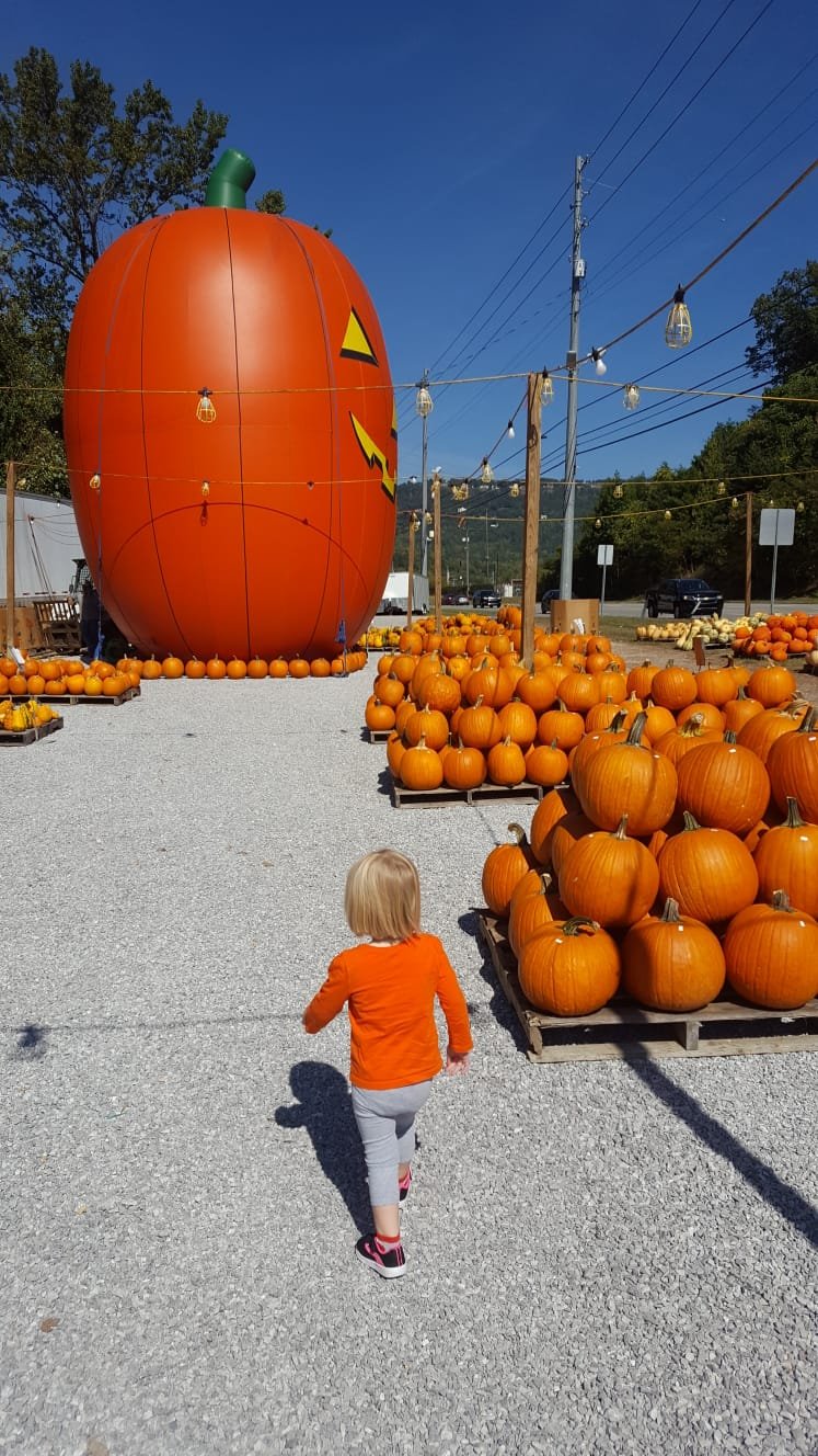 Ember had a big time this weekend with Daddy, picking out some pumpkins from the lot with the Big Pumpkin that she drives by each day to and from school.
