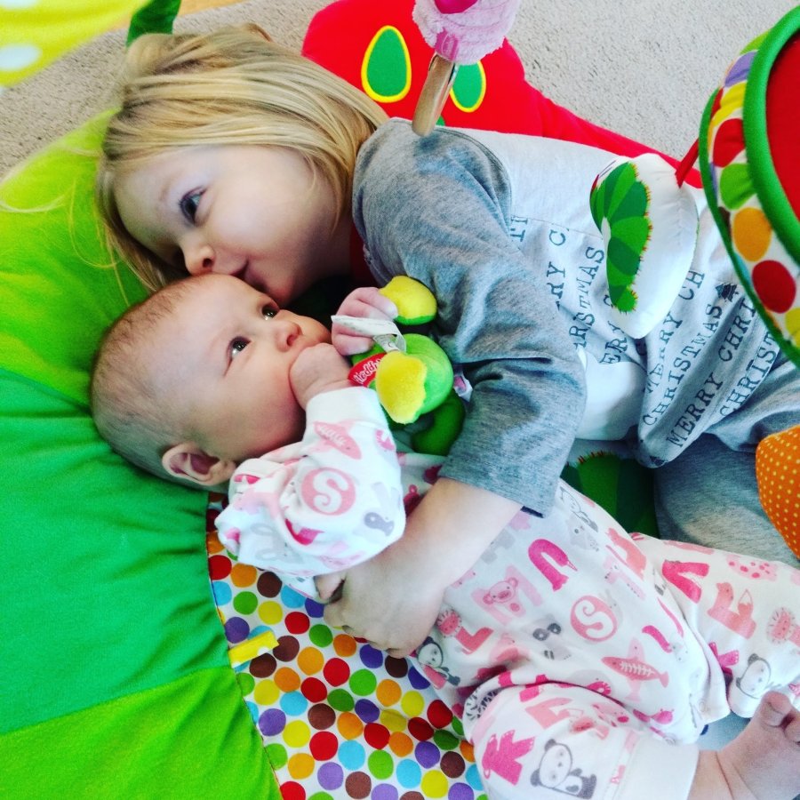 She has discovered her feet and hands and is gnawing on everything and drooling like a champ. But her FAVORITE thing is her big sister. When she hears her voice she immediately looks for her and smiles anytime she sees her. Ember LOVES this and is always sweet to her baby sister. We remind her to be gentle, be careful, don’t squish your sister, etc regularly.