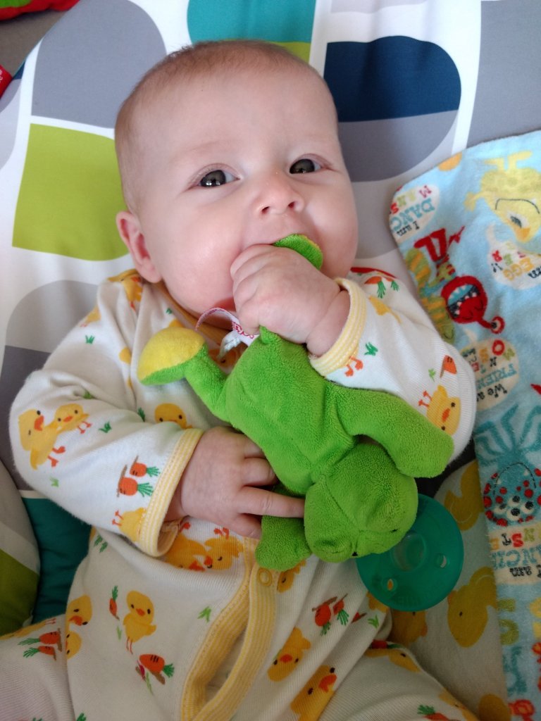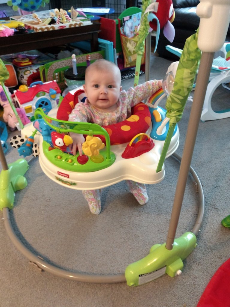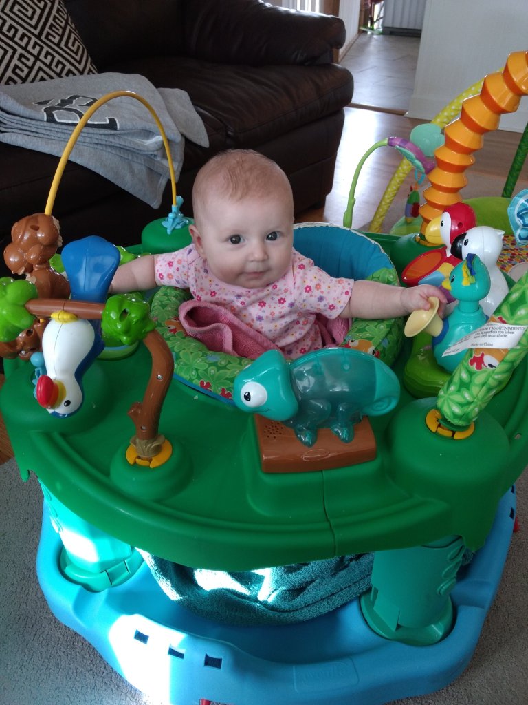 She’s having a great time in her jungle exersaucer as well as her new rainforest jumper.