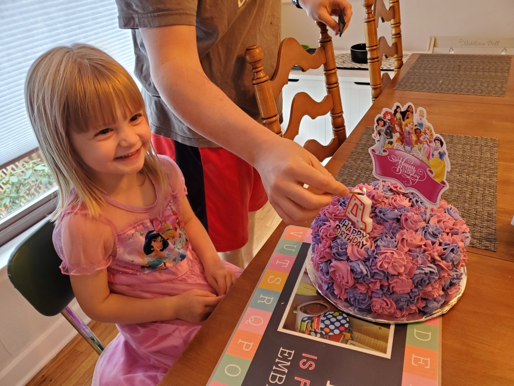 Last year, we had planned to take Ember to Disney to meet the Princesses for her 3rd birthday. We were so sad to cancel the trip due to COVID but knew it was the right thing to do. The week after we canceled, the world shut down and we had no idea what was about to happen. Her 3rd birthday was spent with video chats from virtual princesses and only one in person visit with Gigi. Everyone else called and video chatted and we had a pretty somber 3rd birthday.