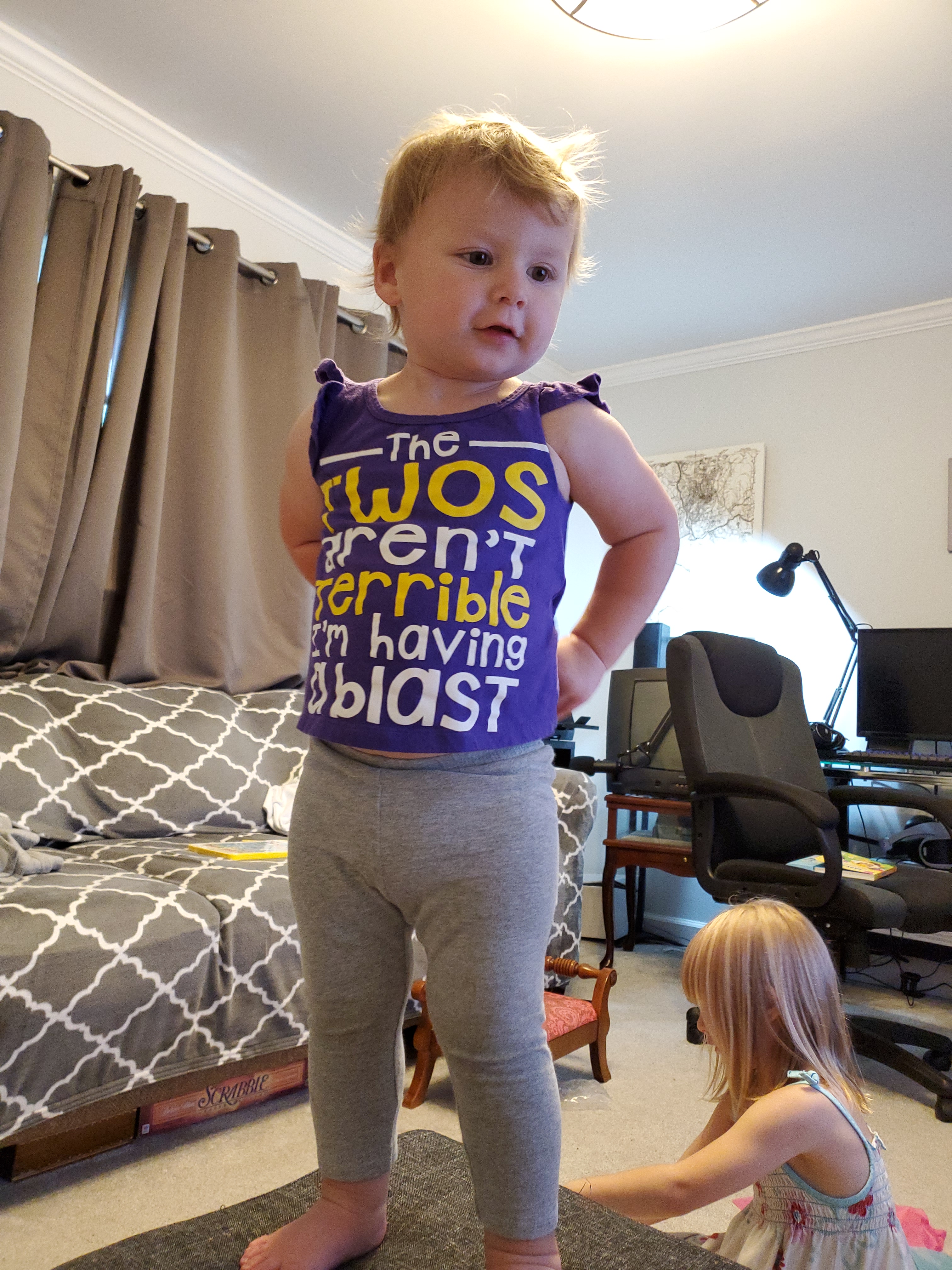 She is SO busy. She is talking up a storm, playing WITH Ember, and having a blast. She’s also making me crazy by stripping off her clothes and trying to use the potty but I’m sure we will survive it. She is learning shapes and colors, counts to ten and sings her ABC’s. She throws epic tantrums and has recently learned the word “cookie.”