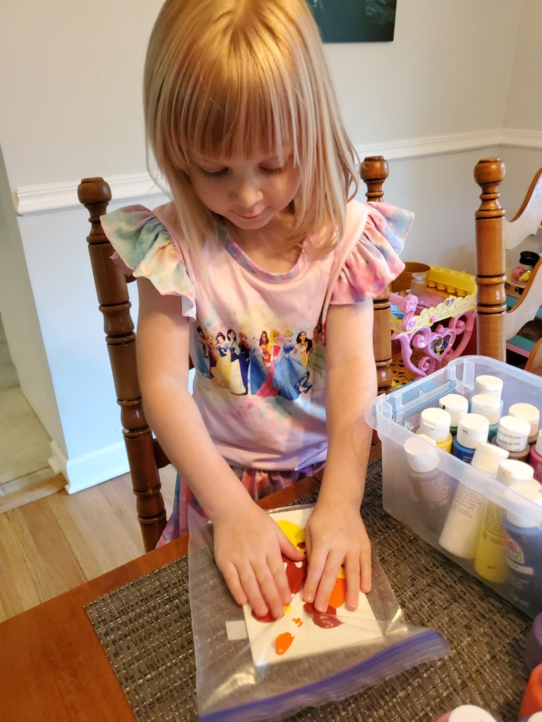 We play with Playdough daily, Ember works on her school skills like sight words, writing letters, art and other creative things like home economics.