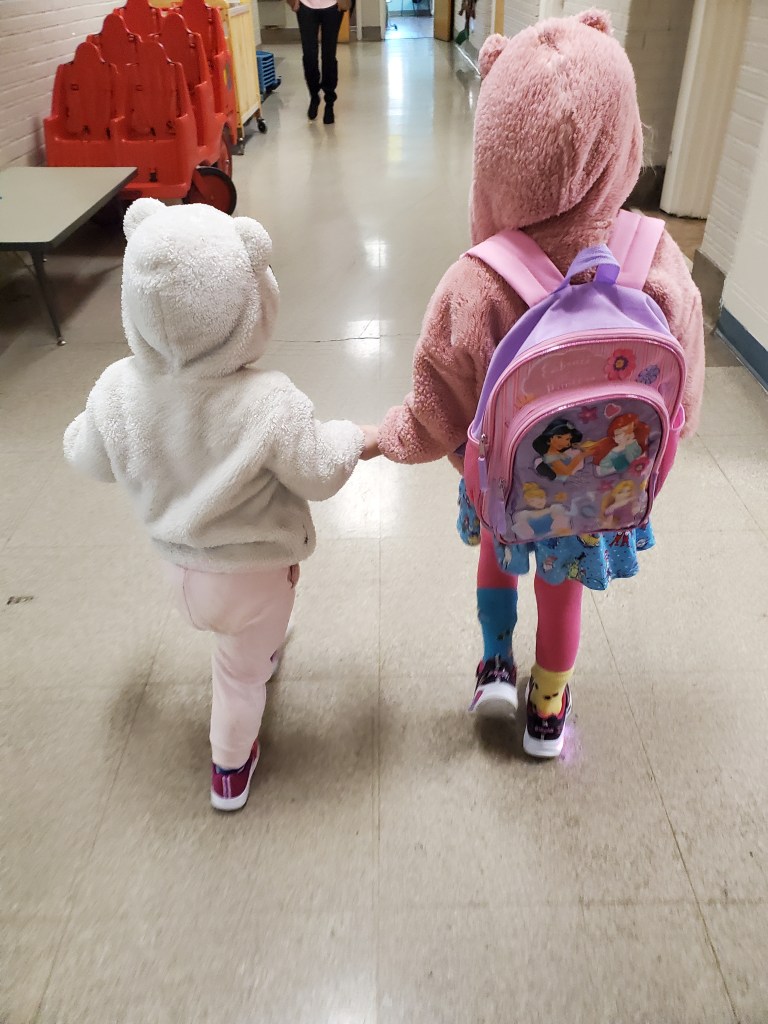 Suddenly, at the end of February, we saw the COVID case numbers dropping and decided it was time. The girls went back to daycare. We are having them stay home with me on Wednesdays, but otherwise we all pile on the car the rest of the week and go to school. Both girls have done an amazing job of transitioning back into school after almost 2 years at home. I am so proud of us all for making the most of such a challenging time.