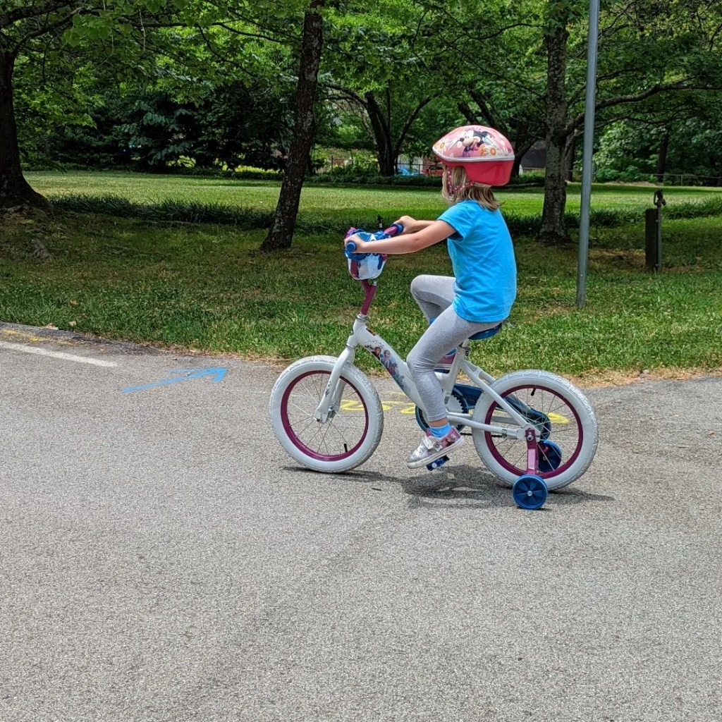 Ember finished her first swim lessons recently and had a blast. She even went down the Big Slide by herself! She’s also learning to ride a bike.